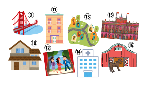 ⑨橋 ⑩家 ⑪アパート ⑫劇場